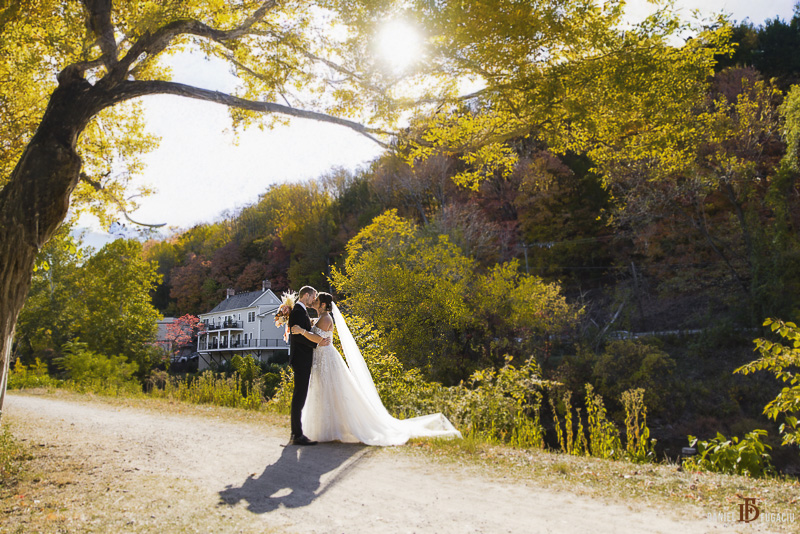 After the ceremony, we took a stroll along the nearby river trail for portraits. The fall foliage was in full display, with vibrant shades of red, orange, and gold adding depth and richness to every photo. Victoria and Mat were naturals in front of the camera—their joy and love for each other shined through, making every shot feel genuine and full of life.